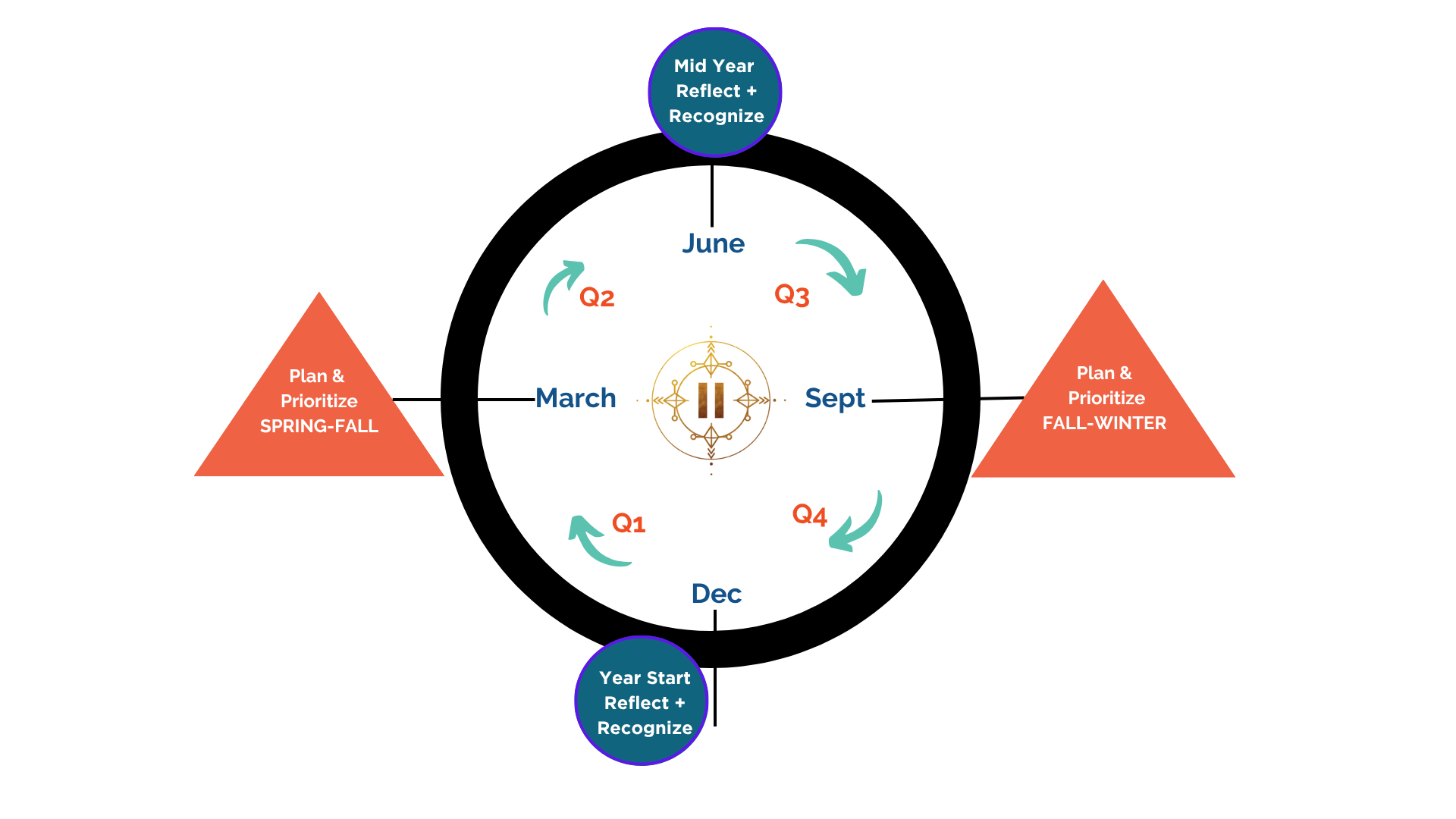 We also work with teams to develop a ‘cyclical planning & prioritizing calendar’ with 2-3 Power Pauses a year that over time creates a cadence & rhythm and a very stabilizing consistency for teams.