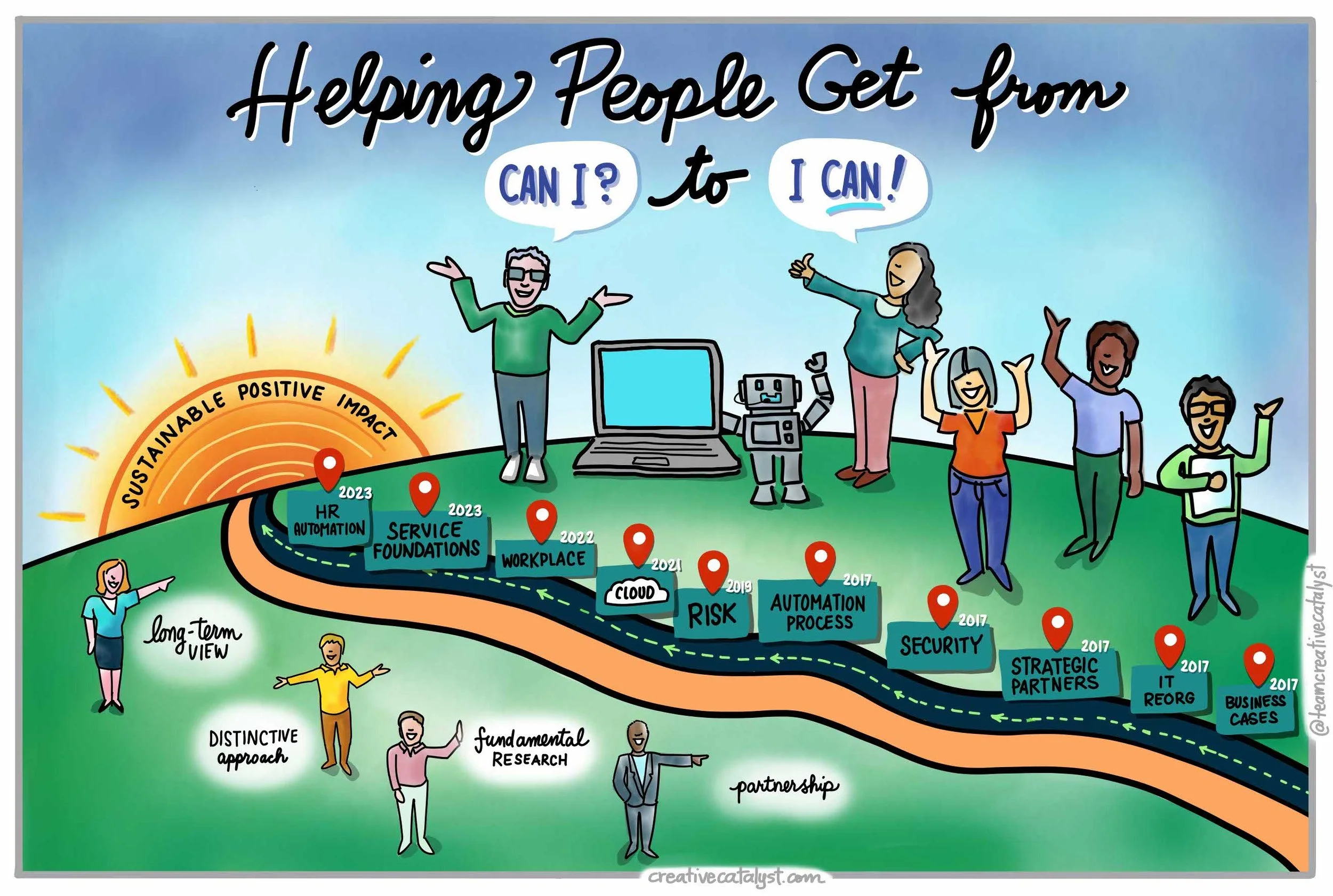 Vision and Journey Maps (also called Custom Charts) harness the power of metaphor to illustrate your organizations’s message—so all stakeholders intuitively understand key outcomes, strategic goals & the vision behind it all.