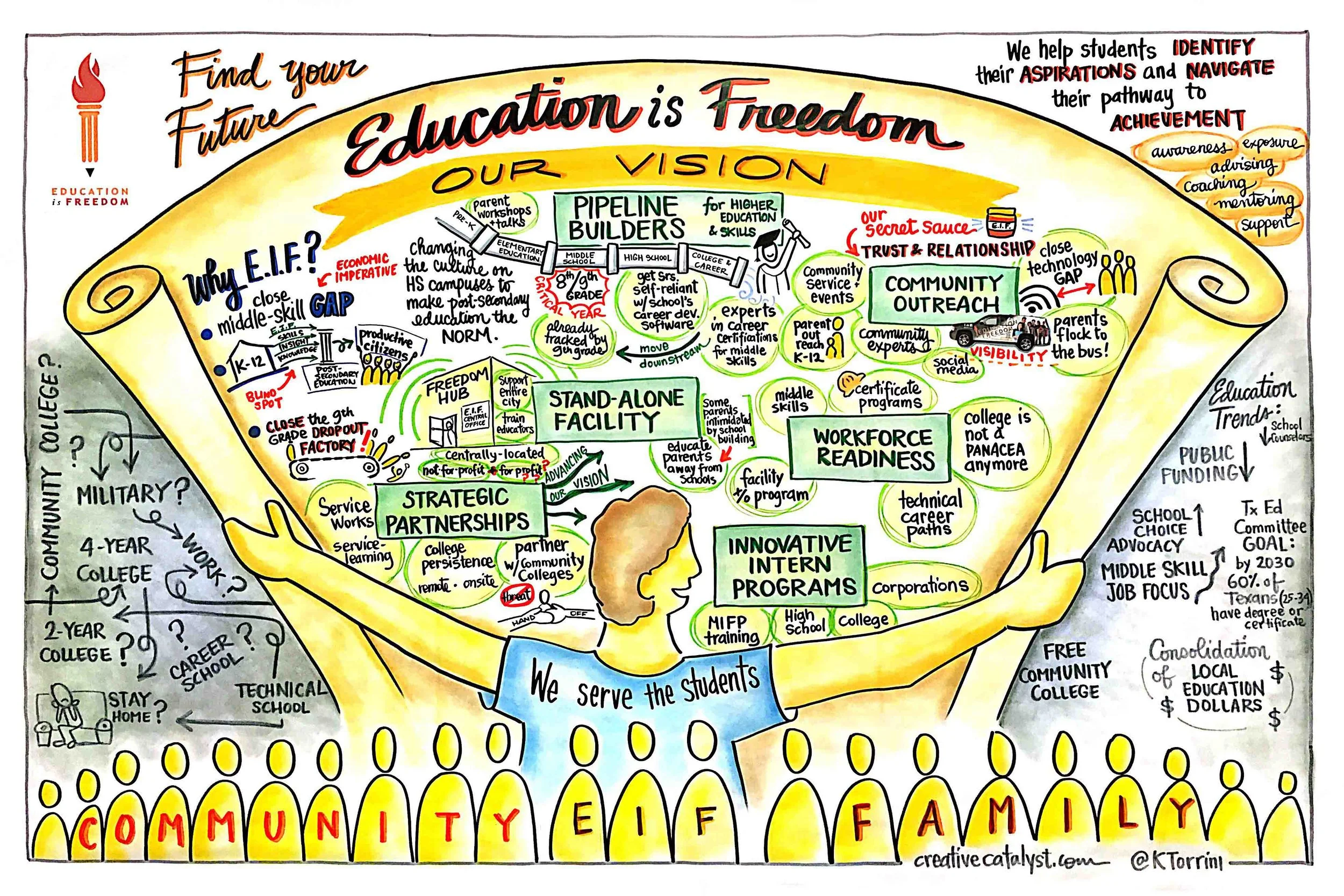 While a Graphic Recording unfolds before your eyes at an event, a Custom Chart is collaboratively designed, then produced in the studio —to strategically tell an important story to a specific audience.